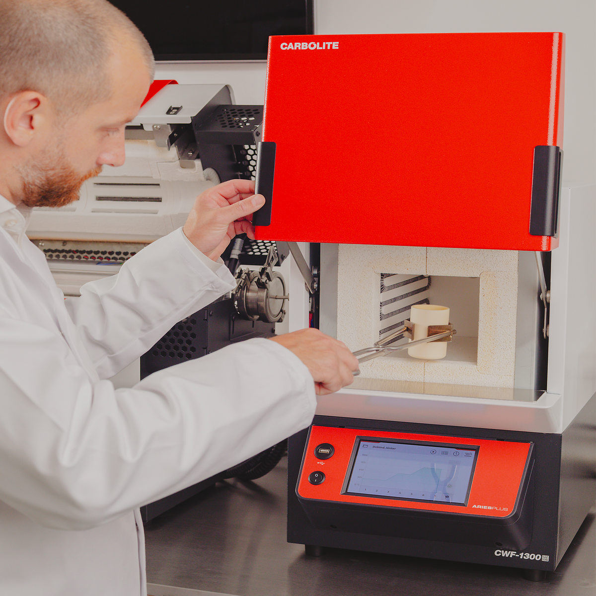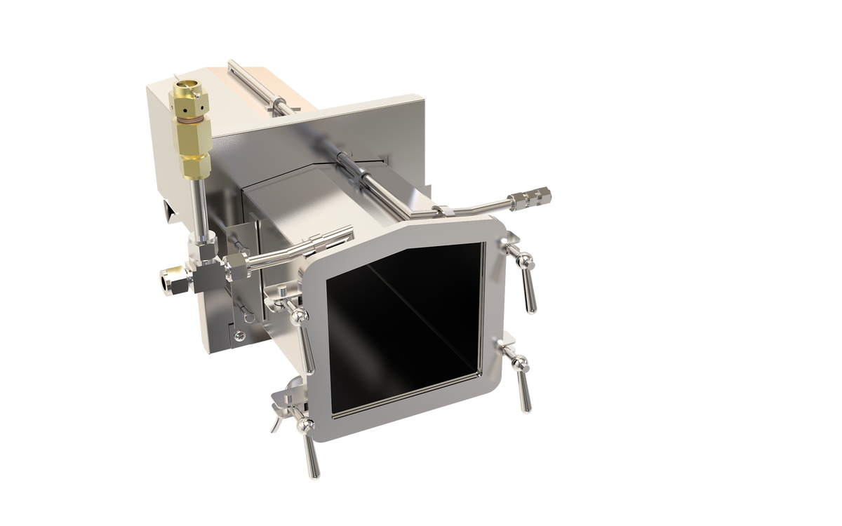 The A105 retort is sealed by a removable front opening insulated door fitted with a silicone rubber seal. Gas inlet and outlet connections are easily accessible at the front. Oxygen levels down to 30 ppm are achievable. A105 retorts for CWF furnaces are fitted with a 3 mm thermocouple gland through the centre of the door. The retort and furnace must be ordered together as the furnace is modified to allow it to be used with, and without, the retort. The A105 retort can be used in combination with the laboratory gas safety system for safe use with hydrogen.